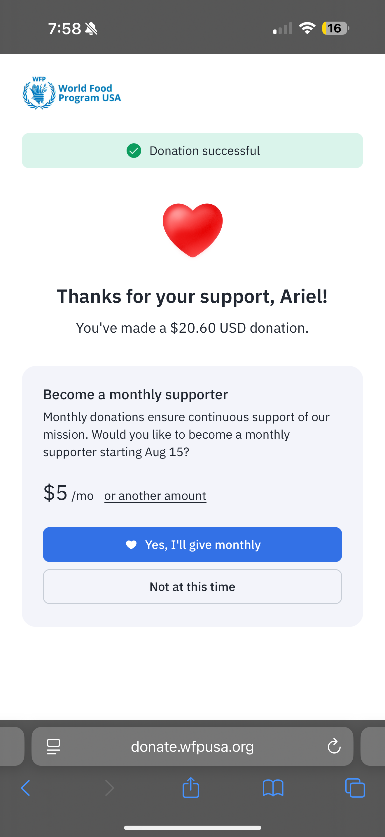 Donations August 15th - September 14th 2025